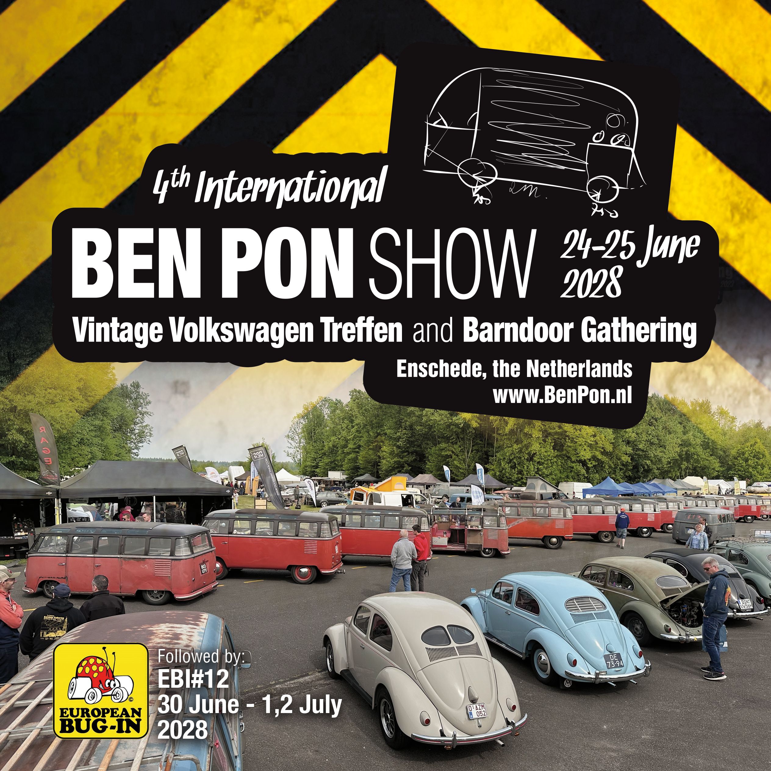 BEN PON SHOW After three (2014, 2018 and 2023) successful editions, often described as “EPIC” by participants, many VW-enthusiast are looking forward to the next edition! This will be organised in 2028, the weekend before the European Bug-In #12!